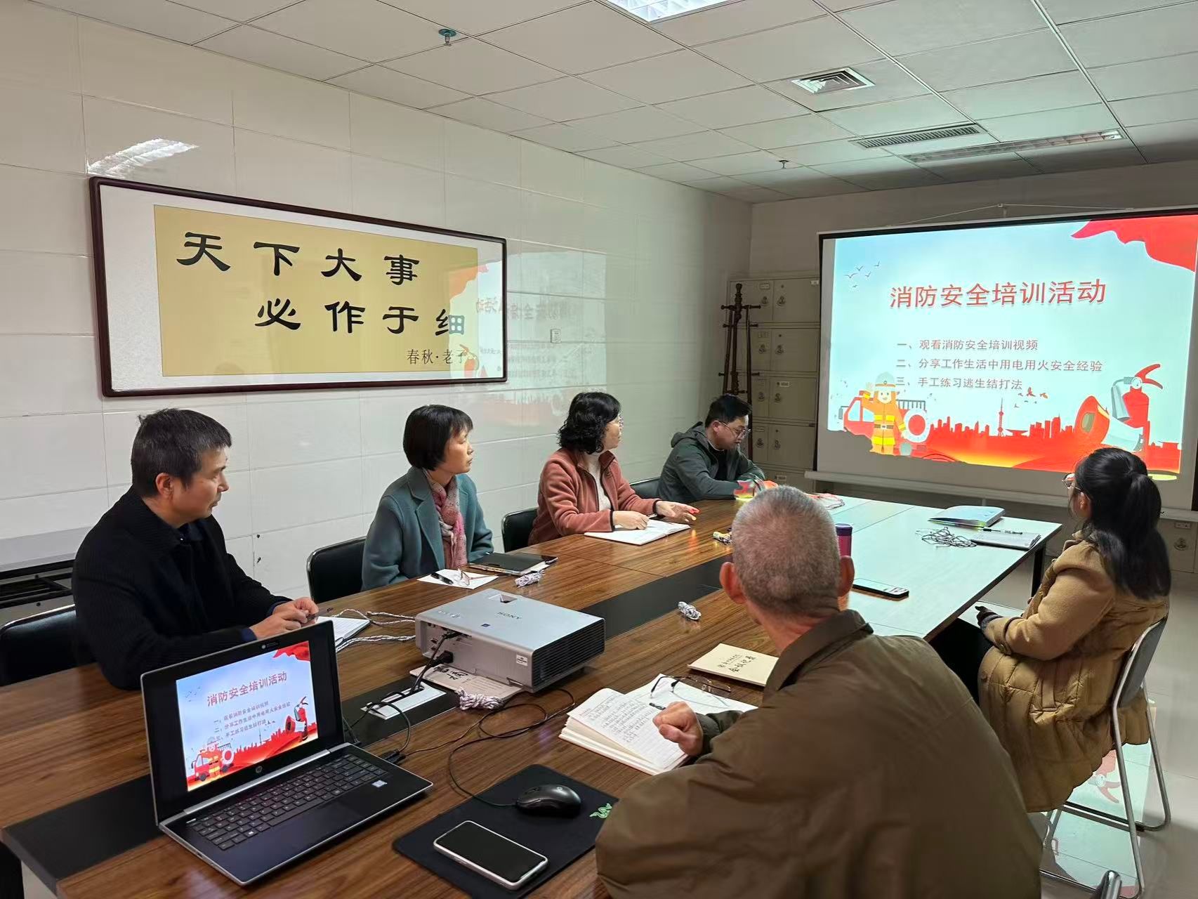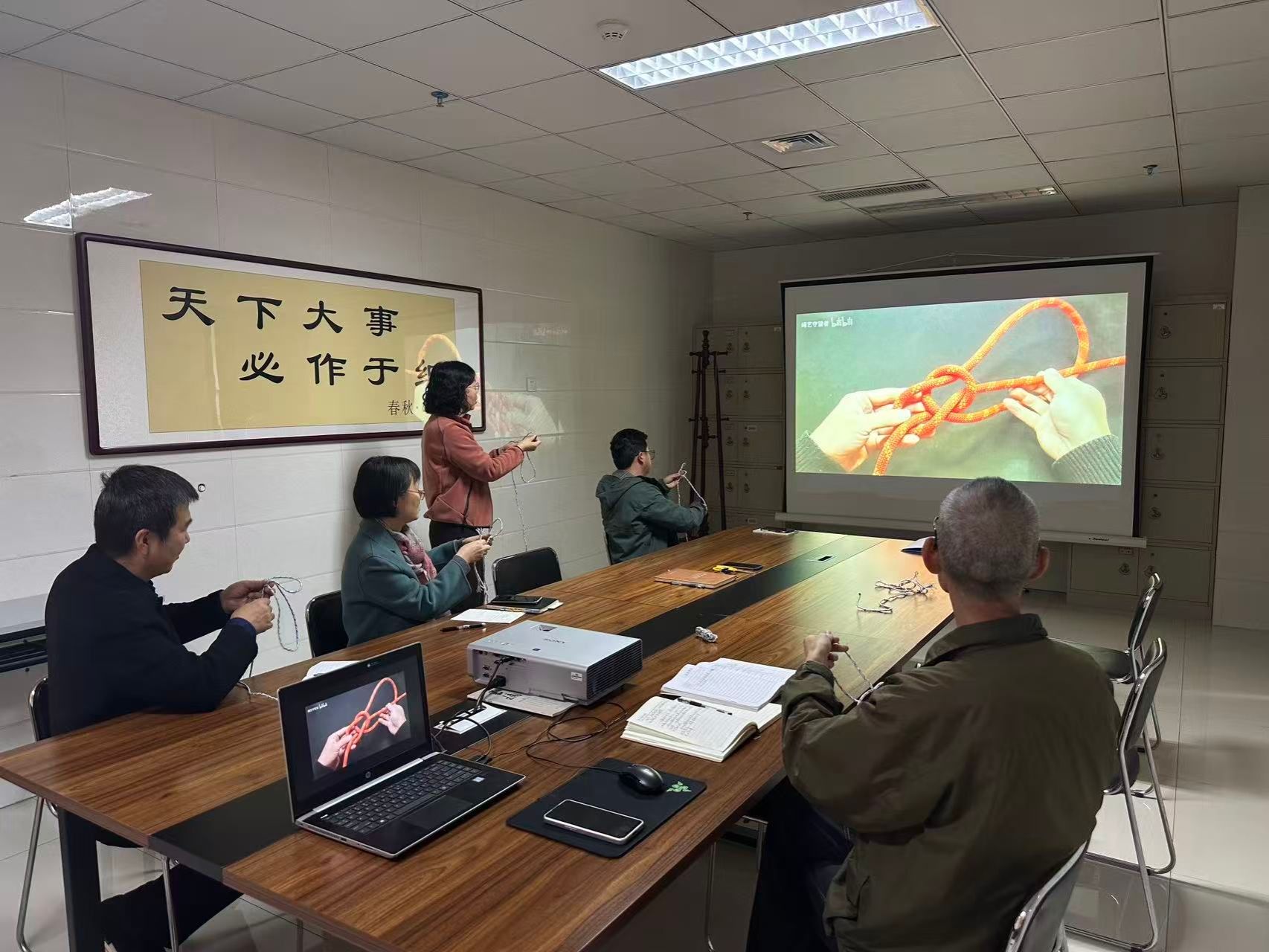 培训伊始,全体人员集中观看了 2025 年消防安全专题宣传片。片中详细解读了第 34 个全国消防日 “全民消防、生命至上 —— 安全用火用电”的核心主题,通过真实火灾案例复盘、隐患场景模拟等直观形式,深刻揭示了不规范用火用电可能引发的严重后果,让大家对火灾隐患的隐蔽性、危害性有了更清晰的认知,进一步绷紧了消防安全 “思想弦”。 在经验交流环节,大家围绕 “规范用火用电、防范火灾隐患” 主题积极发言,分享了日常工作和生活中的消防安全实操经验。这些贴近实际的经验分享,让培训内容更具针对性和实用性,形成了 “人人谈安全、事事讲安全” 的良好氛围。技能实操演练环节,考虑到档案馆建筑结构特点和档案资料重要性,结合视频中的标准演示,组织大家现场学习并练习逃生结、布林结、八字结等实用绳结的打法。通过练习,大家掌握了不同绳结的适用场景和打结技巧,进一步提升了应急处置能力。